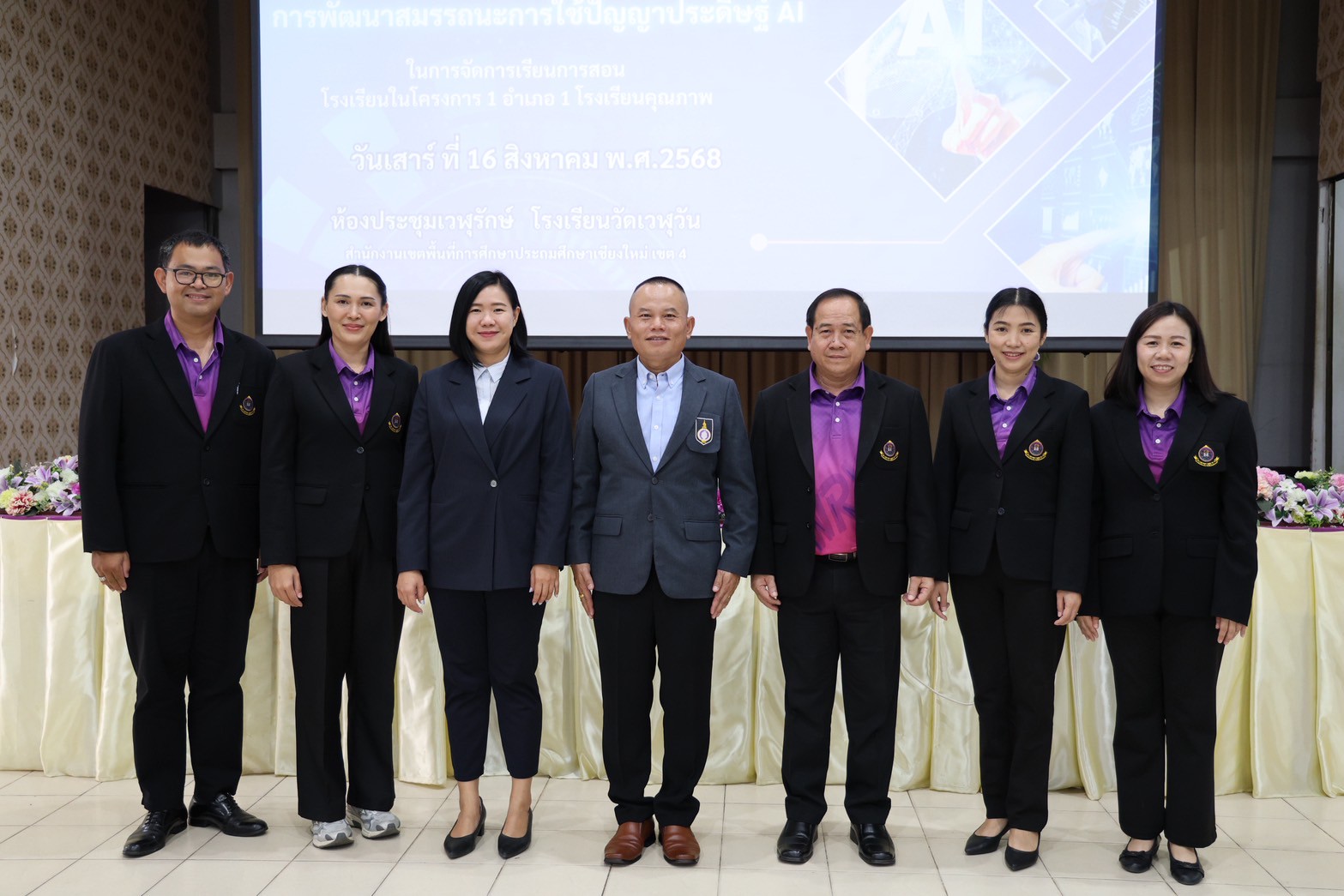 วันที่ 16 สิงหาคม 2568 ดร.ชาญชิต ทัพหมี ผอ.สพป.เชียงใหม่ เขต 4 มอบหมายให้ นายสมพงษ์ แสนสำโรง รอง ผอ.สพป.เชียงใหม่ เขต 4 เป็นประธานในพิธีเปิดการอบรมเชิงปฏิบัติการการพัฒนาสมรรถนะการใช้ปัญญาประดิษฐ์ AI ในการจัดการเรียนการสอนโรงเรียน ภายใต้โครงการ 1 อำเภอ 1 โรงเรียนคุณภาพ โดยมีผู้บริหารสถานศึกษา และข้าราชการครู เข้าร่วมการอบรม ณ โรงเรียนวัดเวฬุวัน อ.สารภี จ. เชียงใหม่