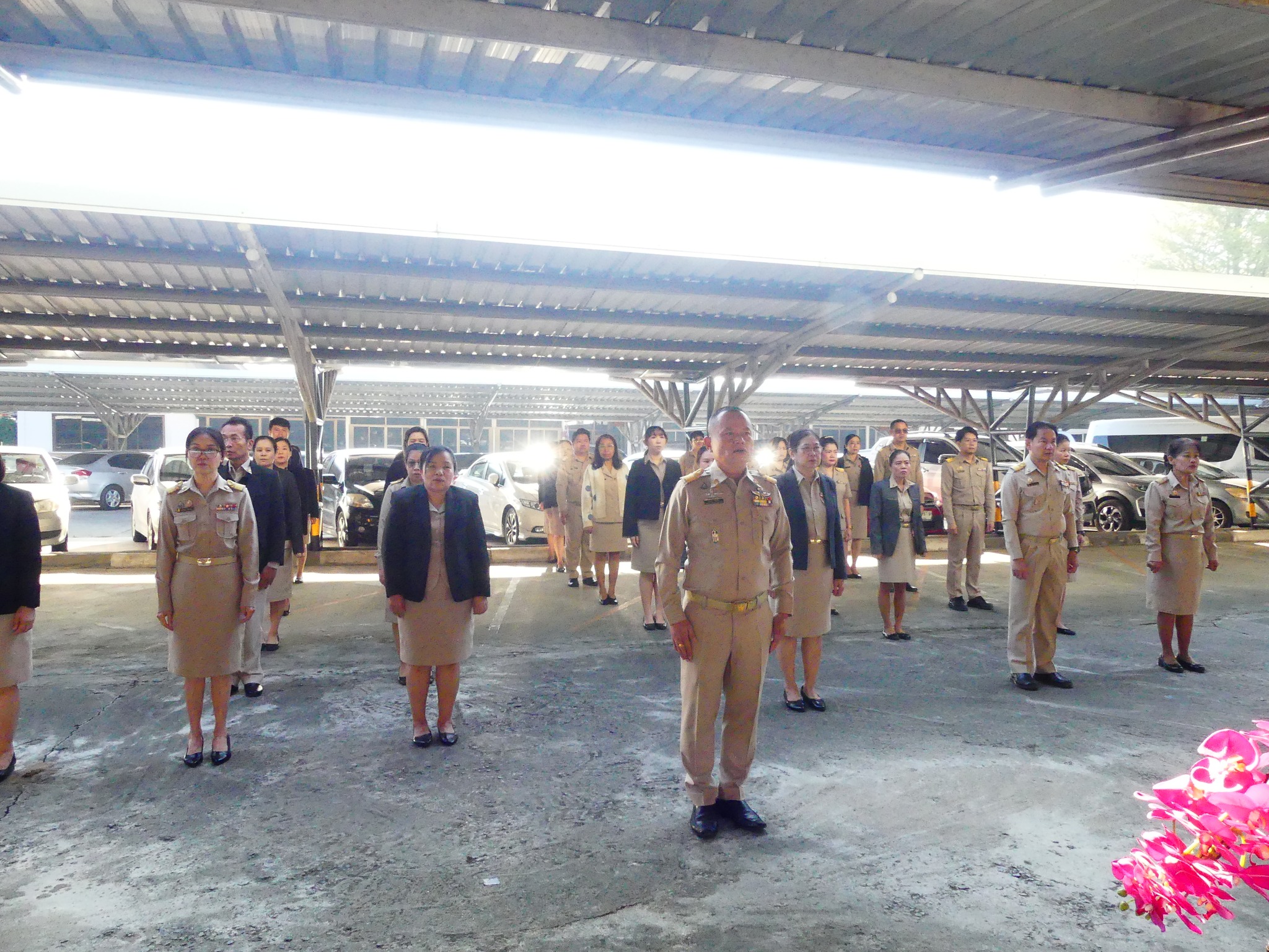 วันจันทร์ที่ 1 ธันวาคม 2568 ดร.ชาญชิต ทัพหมี ผอ.สพป.เชียงใหม่ เขต 4 มอบหมายให้ นายสมพงษ์ แสนสำโรง รอง ผอ.สพป.เชียงใหม่ เขต 4 นำข้าราชการครูและบุคลากรทางการศึกษา ในสังกัด ดำเนินกิจกรรมเข้าแถวเคารพธงชาติ สวดมนต์ไหว้พระ ร้องเพลงสรรเสริญพระบารมี เพลงสดุดดีจอมราชา และเพลงจำขึ้นใจ เพื่อ แสดงความจงรักภักดี ต่อสถาบันชาติ ศาสนา พระมหากษัตริย์ โดยมี นางธนพินท์ พวงทอง รองผู้อำนวยการ สพป. เชียงใหม่ เขต 4 ผู้อำนวยการกลุ่ม/หน่วย ข้าราชการ และลูกจ้าง ในสังกัดเข้าร่วมกิจกรรมโดยพร้อมเพรียงกัน ณ บริเวณลานหน้าเสาธง สพป. เชียงใหม่ เขต 4