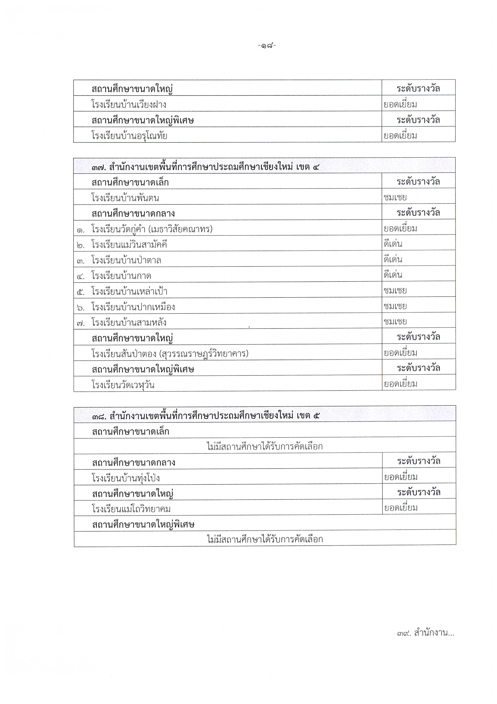 สำนักงานเขตพื้นที่การศึกษาประถมศึกษาเชียงใหม่ เขต 4 ขอแสดงความยินดีกับโรงเรียนที่ได้รับรางวัล IQA AWARD ปี 2565 ผลการพัฒนาให้สถานศึกษามีระบบและกลไกการบริหารจัดการคุณภาพและมาตรฐานการศึกษา เพื่อการประกันคุณภาพการศึกษาที่มีประสิทธิภาพ และได้รับการคัดเลือกจากสำนักงานคณะกรรมการการศึกษาขั้นพื้นฐานเพื่อรับรางวัล IQA AWARD ปีการศึกษา 2565 ได้แก่