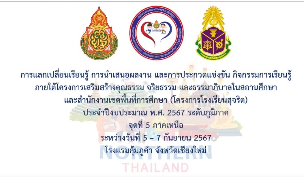 ดร.ชาญชิต ทัพหมี ผู้อำนวยการ สพป.เชียงใหม่ เขต 4 พร้อมด้วยนางอุไรวรรณ สุรภีร์ รองผู้อำนวยการ สพป.เชียงใหม่ เขต 4 และคณะศึกษานิเทศก์เข้าร่วม พิธีเปิดกิจกรรมแลกเปลี่ยนเรียนรู้ การนำเสนอผลงาน และการประกวดแข่งขัน กิจกรรมการเรียนรู้ ภายใต้โครงการเสริมสร้างคุณธรรม จริยธรรม และธรรมาภิบาลในสถานศึกษาและสำนักงานเขตพื้นที่การศึกษา (โครงการโรงเรียนสุจริต) ประจำปีงบประมาณ พ.ศ. 2567 ระดับภูมิภาค ภาคเหนือ