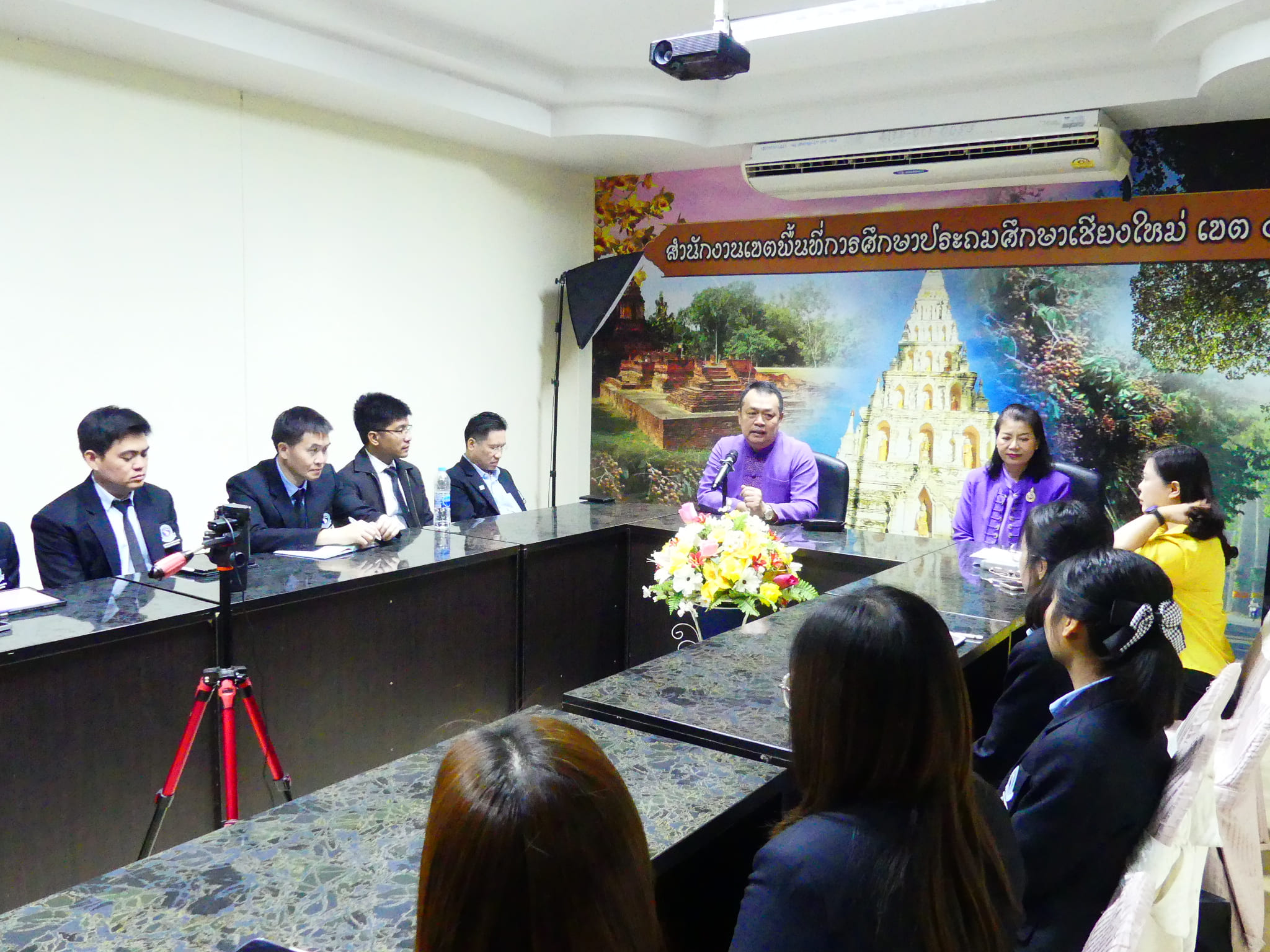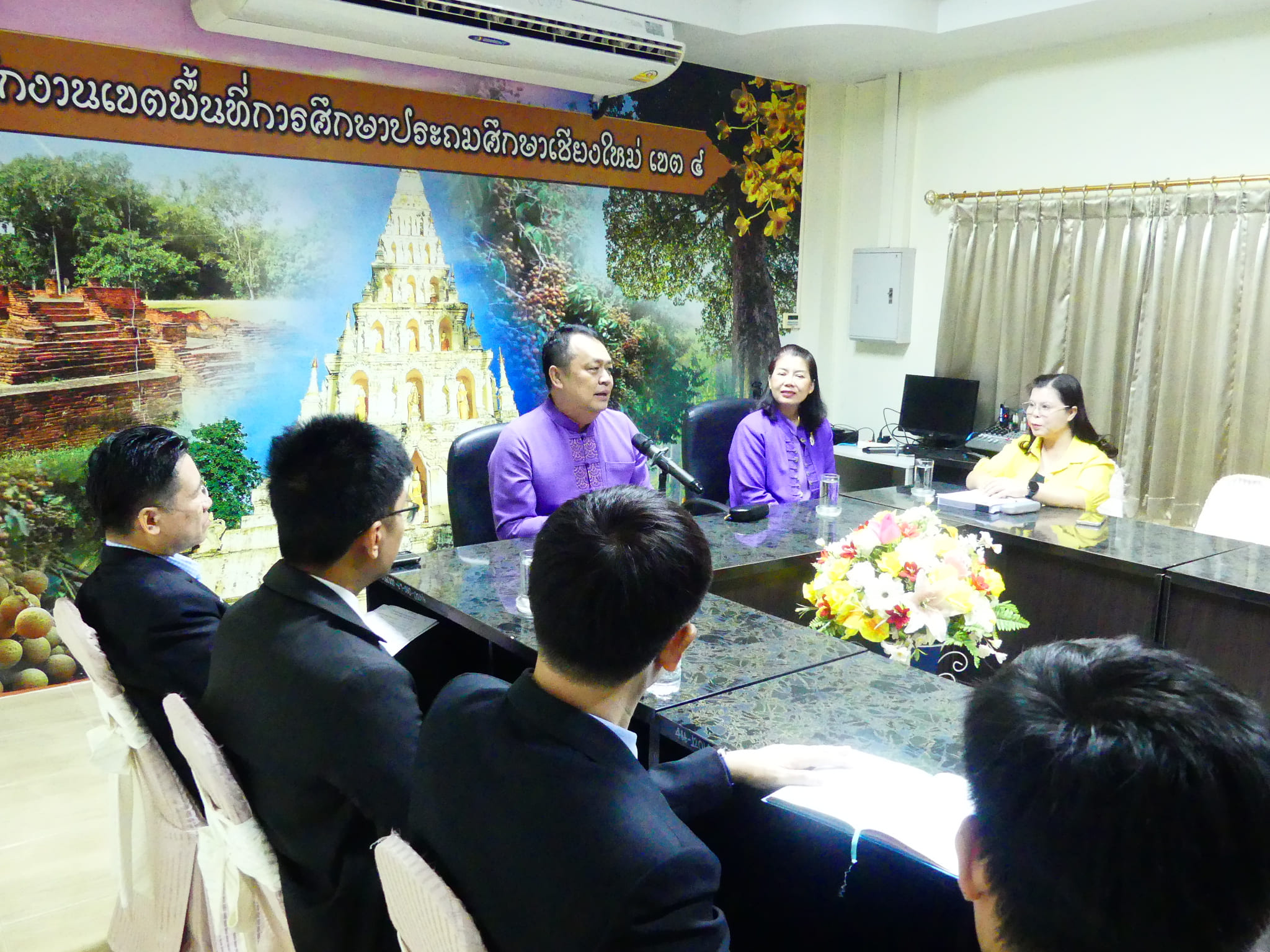 ดร.ชาญชิต ทัพหมี ผู้อำนวยการ สพป.เชียงใหม่ เขต 4 พร้อมด้วย นางอุไรวรรณ์ สุรภีร์ รองผู้อำนวยการสำนักงานเขตพื้นที่การศึกษา และนางปวีณ์พิมพ์ โรจนมณี ผู้อำนวยการกลุ่มอำนวยการ และนางพัชราภรณ์ เทพวรรณ ผู้อำนวยการกลุ่มบริหารงานบุคคล ให้การต้อนรับ รศ.ดร.ยงยุทธ ยะบุญธง อาจารย์ประจำสาขาวิชาบริหารการศึกษา และปฐมนิเทศนักศึกษาปริญญาโท สาขาวิชาบริหารการศึกษา ภาควิชาพื้นฐานและการพัฒนาการศึกษา คณะศึกษาศาสตร์ มหาวิทยาลัยเชียงใหม่ ปีการศึกษา 2567