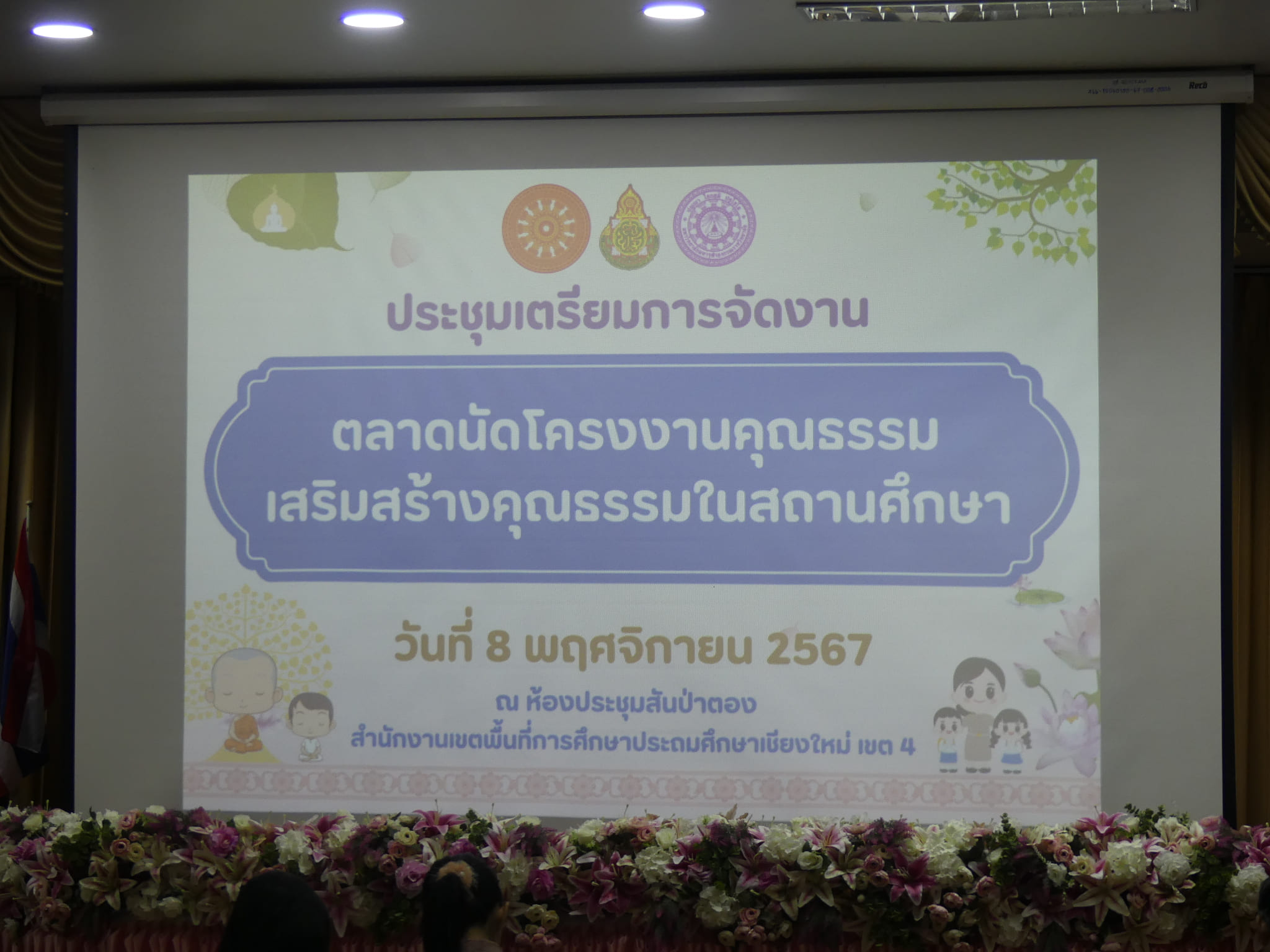 วันที่ 8 พฤศจิกายน 2567 พระสุวรรณเมธี ดร.รองเจ้าคณะจังหวัดเชียงใหม่ เป็นประธานการประชุม เตรียมการจัดกิจกรรม“ตลาดนัดโครงงานคุณธรรม เสริมสร้างคุณธรรมในสถานศึกษา” โดยความร่วมมือระหว่างสำนักงานเขตพื้นที่การศึกษาประถมศึกษาเชียงใหม่ เขต 4 กับ มหาวิทยาลัยมหาจุฬาลงกรณ์ราชวิทยาลัย วิทยาเขตเชียงใหม่ และคณะสงฆ์ จังหวัดเชียงใหม่ มีนายสายัณห์ คำลือ รองผู้อำนวยการสำนักงานเขตพื้นที่การศึกษา เป็นผู้กล่าวรายงาน ในการนี้มีนางธนพินท์ พวงทอง รองผู้อำนวยการสำนักงานเขตพื้นที่การศึกษา นางฉวีวรรณ ไชยพิเศษ ศึกษานิเทศก์ชำนาญการพิเศษ ผู้บริหารสถานศึกษา คณะครู เจ้าหน้าที่ และพระสอนศีลธรรมในโรงเรียนเขตพื้นที่การศึกษาประถมศึกษาเชียงใหม่ เขต 4 เข้าร่วมประชุม ณ ห้องประชุมสันป่าตอง สำนักงานเขตพื้นที่การศึกษาประถมศึกษาเชียงใหม่ เขต 4