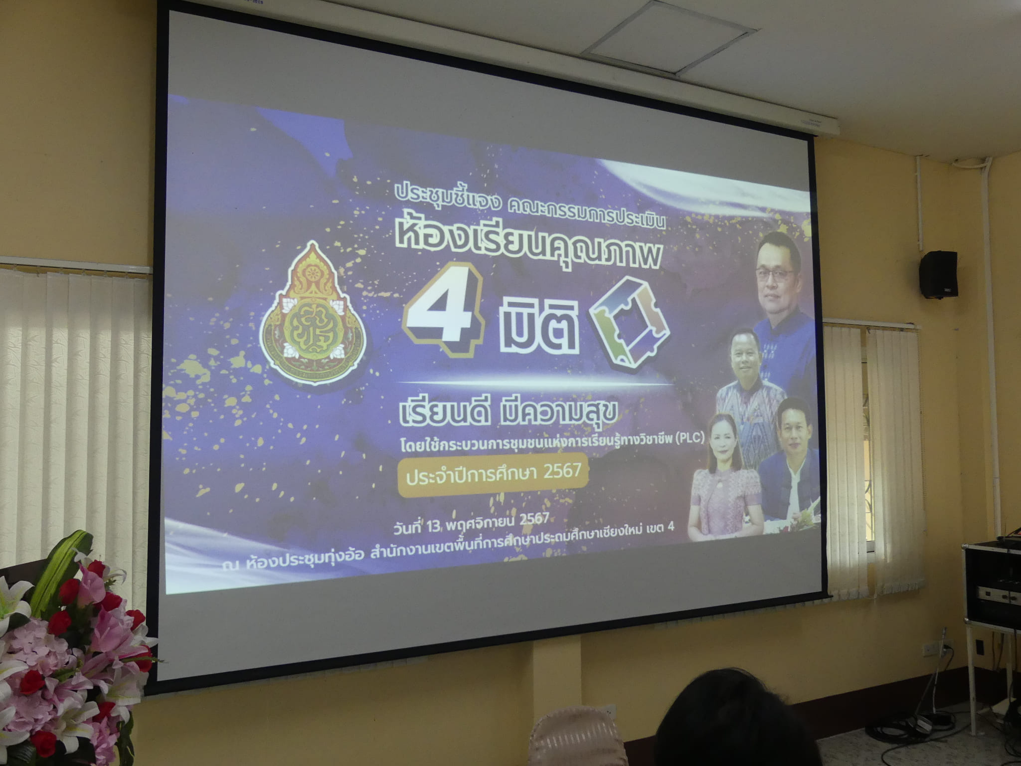 วันที่ 13 พฤศจิกายน 2567 เวลา 09.30 น. ดร.ชาญชิต ทัพหมี ผู้อำนวยการสำนักงานเขตพื้นที่การศึกษาประถมศึกษาเชียงใหม่ เขต 4 เป็นประธานการประชุมคณะกรรมการประเมินห้องเรียนคุณภาพ 4 มิติ ตามโครงการพัฒนาคุณภาพการจัดการเรียนรู้เพื่อเสริมสร้างศักยภาพผู้เรียน ตามแนวทางการจัดการเรียนรู้เชิงรุก (Active Learning) กิจกรรมพัฒนาห้องเรียนคุณภาพ 4 มิติ ดำเนินการขับเคลื่อนห้องเรียนคุณภาพ 4 มิติ ระดับโรงเรียน มีโรงเรียนเข้าร่วมโครงการ จำนวน 83 โรงเรียน 690 ห้องเรียน โดยมีการประเมินระดับโรงเรียนคัดเลือก 209 ห้องเรียน เข้ารับการประเมินระดับเขตพื้นที่ ณ ห้องประชุมทุ่งอ้อ สำนักงานเขตพื้นที่การศึกษาประถมศึกษาเชียงใหม่ เขต 4