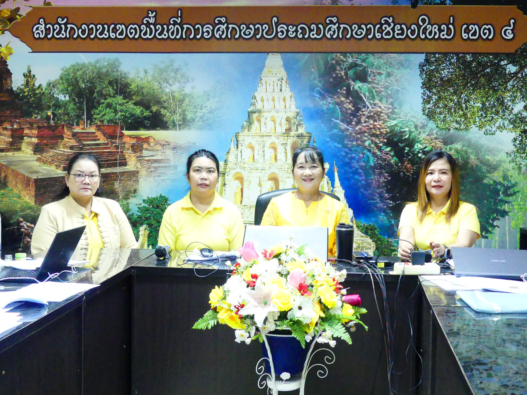 ดร.ชาญชิต ทัพหมี ผู้อำนวยการสำนักงานเขตพื้นที่การศึกษาประถมศึกษาเชียงใหม่ เขต 4 เป็นประธานในพิธีเปิดการประเมินห้องเรียนคุณภาพ 4 มิติ รอบที่ 1 การนำเสนอและการสัมภาษณ์ รูปแบบออนไลน์