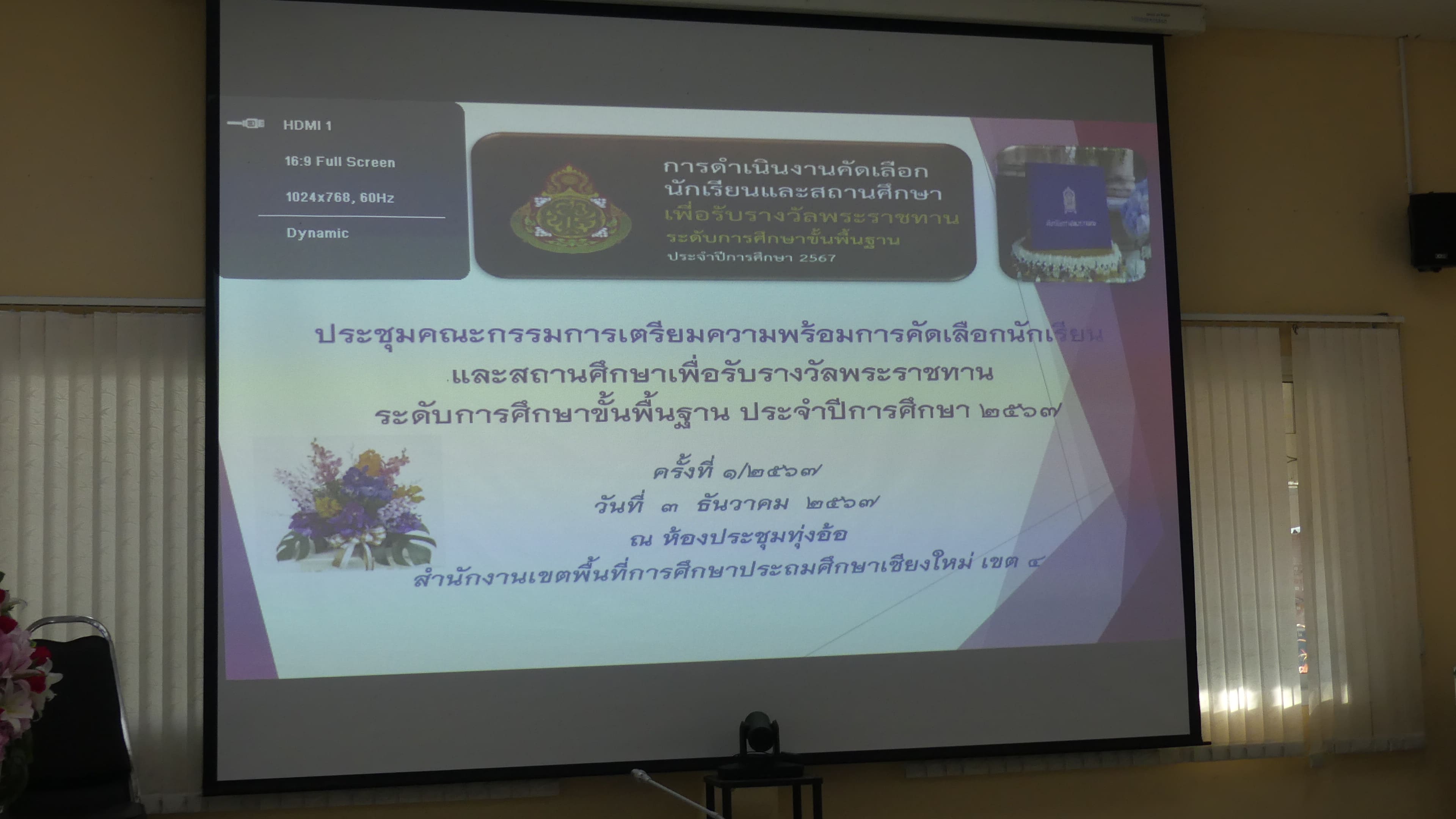 วันที่ 3 ธันวาคม 2567 เวลา 9.30 น. ดร.ชาญชิต ทัพหมี ผู้อำนวยการสำนักงานเขตพื้นที่การศึกษาประถมศึกษาเชียงใหม่ เขต 4 มอบหมายให้ นายสมพงษ์ แสนสำโรง รองผู้อำนวยการสำนักงานเขตพื้นที่การศึกษา เป็นประธานการประชุมคณะกรรมการเตรียมความพร้อม การคัดเลือกนักเรียนและสถานศึกษาเพื่อรับรางวัลพระราชทาน ระดับการศึกษาขั้นพื้นฐาน ประจำปี พ.ศ. 2567 ระดับจังหวัด (เชียงใหม่) ณ ห้องประชุมทุ่งอ้อ สำนักงานเขตพื้นที่การศึกษาประถมศึกษาเชียงใหม่ เขต 4