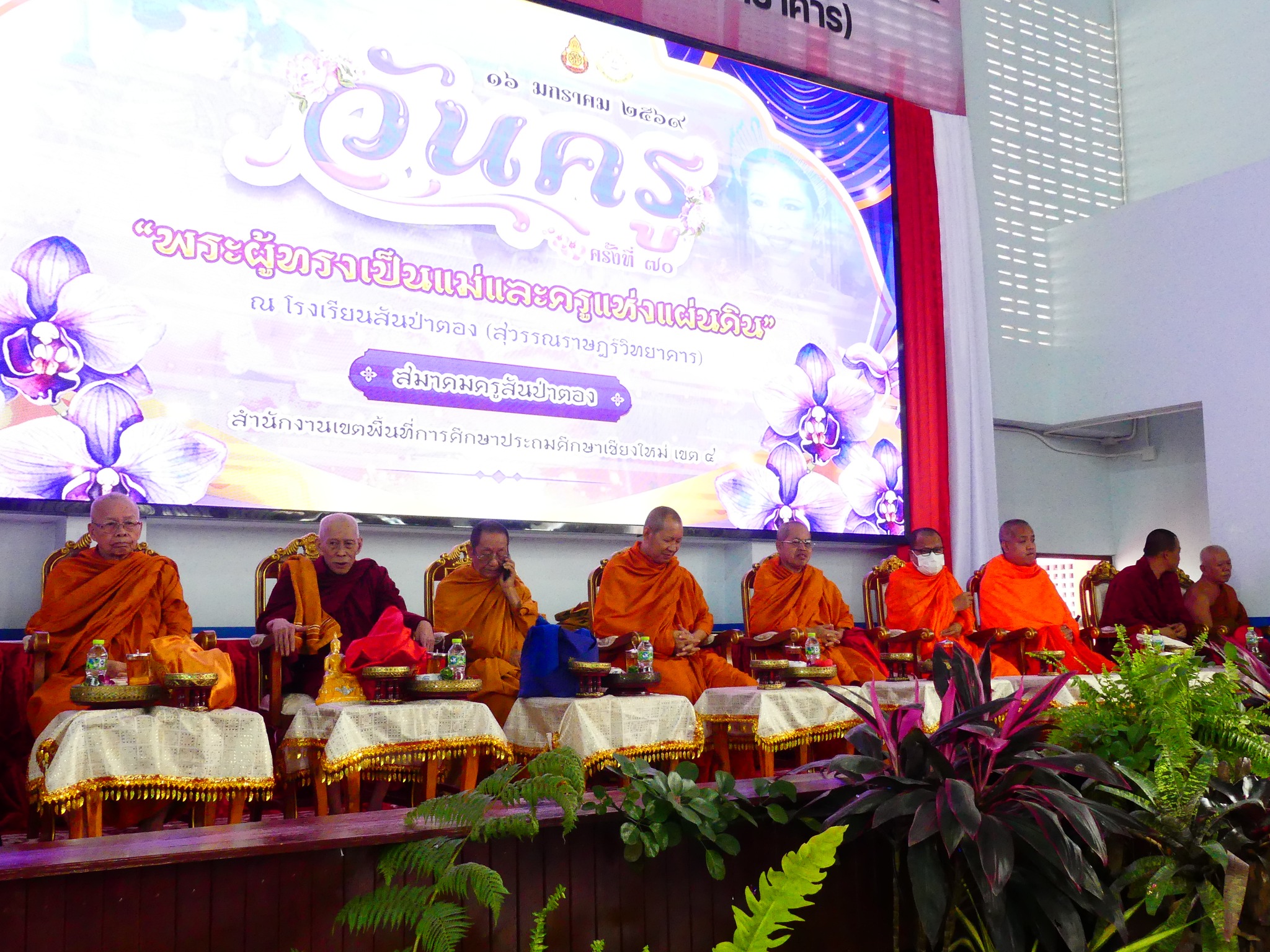วันที่ 16 มกราคม 2569 ดร.ชาญชิต ทัพหมี ผอ.สพป.เชียงใหม่ เขต 4 เป็นประธานงานวันครู "พระผู้ทรงเป็นแม่และครูแห่งแผ่นดิน" ครั้งที่ 70 ของสมาคมครูสันป่าตอง โดยมี นางวาสนา บุญทำช่วย นายอำเภอสันป่าตอง ให้เกียรติร่วมงานฯ และมีคณะผู้บริหารสถานศึกษา ข้าราชการครูและบุคลากรทางการศึกษาในเขตอำเภอสันป่าตอง ร่วมงานฯ ณ อาคารสุวรรณราษฎร์ 105 ปี โรงเรียนสันป่าตอง(สุวรรณราษฎร์วิทยาคาร) อ.สันป่าตอง จ.เชียงใหม่ การจัดกิจกรรมวันครูมีวัตถุประสงค์ เพื่อรำลึกถึงพระคุณของครูผู้เป็นผู้ประสิทธิ์ประสาทวิชาความรู้ อบรมสั่งสอน และปลูกฝังคุณธรรมจริยธรรมแก่ศิษย์ ให้ศิษย์เติบโตเป็นบุคคลที่มีคุณภาพของสังคม