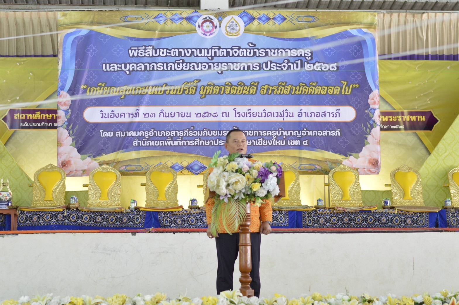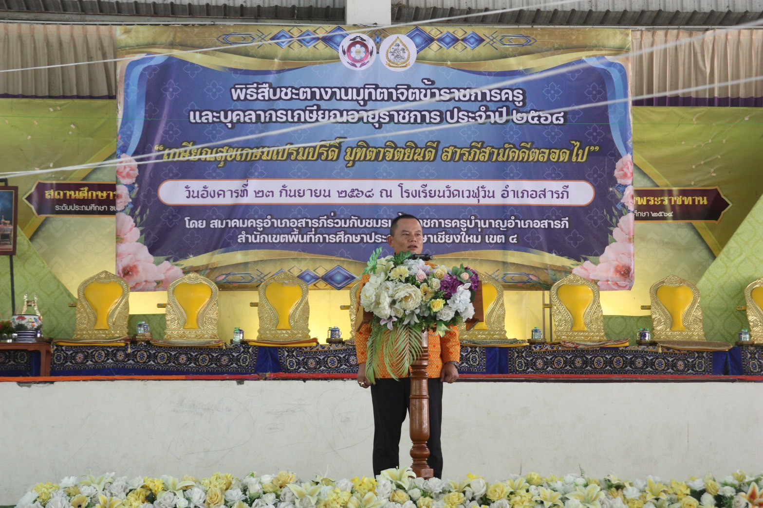 วันที่ 23 กันยายน 2568 ดร.ชาญชิต ทัพหมี ผอ.สพป.เชียงใหม่ เขต 4 มอบหมายให้ นายสมพงษ์ แสนสำโรง รอง ผอ.สพป.เชียงใหม่ เขต 4 เป็นประธานในงานมุฑิตาจิตผู้เกษียณอายุราชการ ประจำปีงบประมาณ พ.ศ. 2568 ของโรงเรียนวัดเวฬุวัน ณ โรงเรียนวัดเวฬุวัน อ.สารภี จ.เชียงใหม่