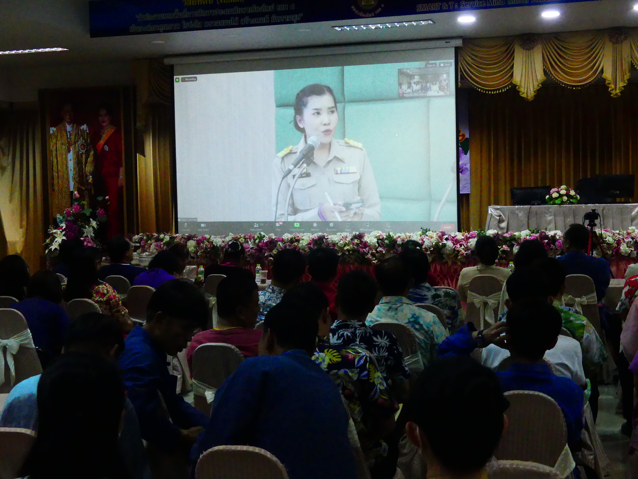 วันที่ ๒๓ เมษายน ๒๕๖๗ ดร.ชาญชิต ทัพหมี ผู้อำนวยการ สพป.เชียงใหม่ เขต ๔ นำคณะรองผู้อำนวยการสำนักงานเขตพื้นที่การศึกษา ผู้อำนวยการกลุ่ม ผู้บริหารสถานศึกษาข้าราชการครูและบุคลากรทางการศึกษา ในสังกัด เข้าร่วมประชุมการเตรียมความพร้อม และรับมอบนโยบายก่อนเปิดภาคเรียน ปีการศึกษา 2567 โดยพลตำรวจเอกเพิ่มพูน ชิดชอบ รัฐมนตรีว่าการกระทรวงศึกษาธิการ เป็นประธานการประชุม ผ่านระบบ Video Conference ณ ห้องประชุมสันป่าตอง สพป.เชียงใหม่ เขต 4