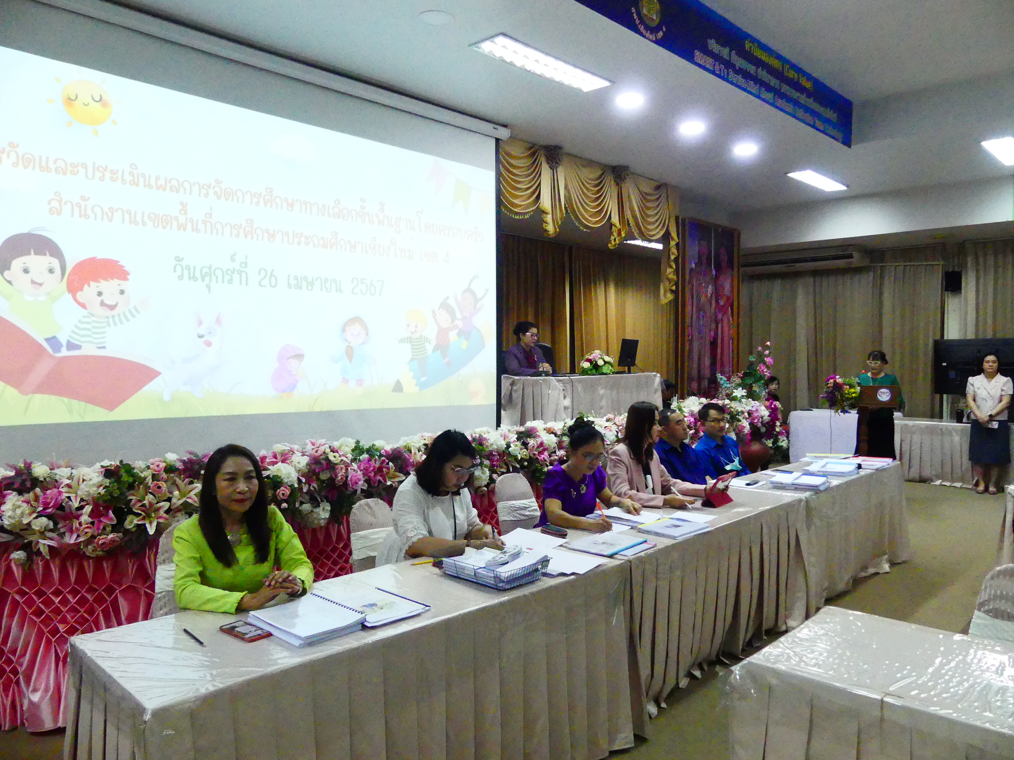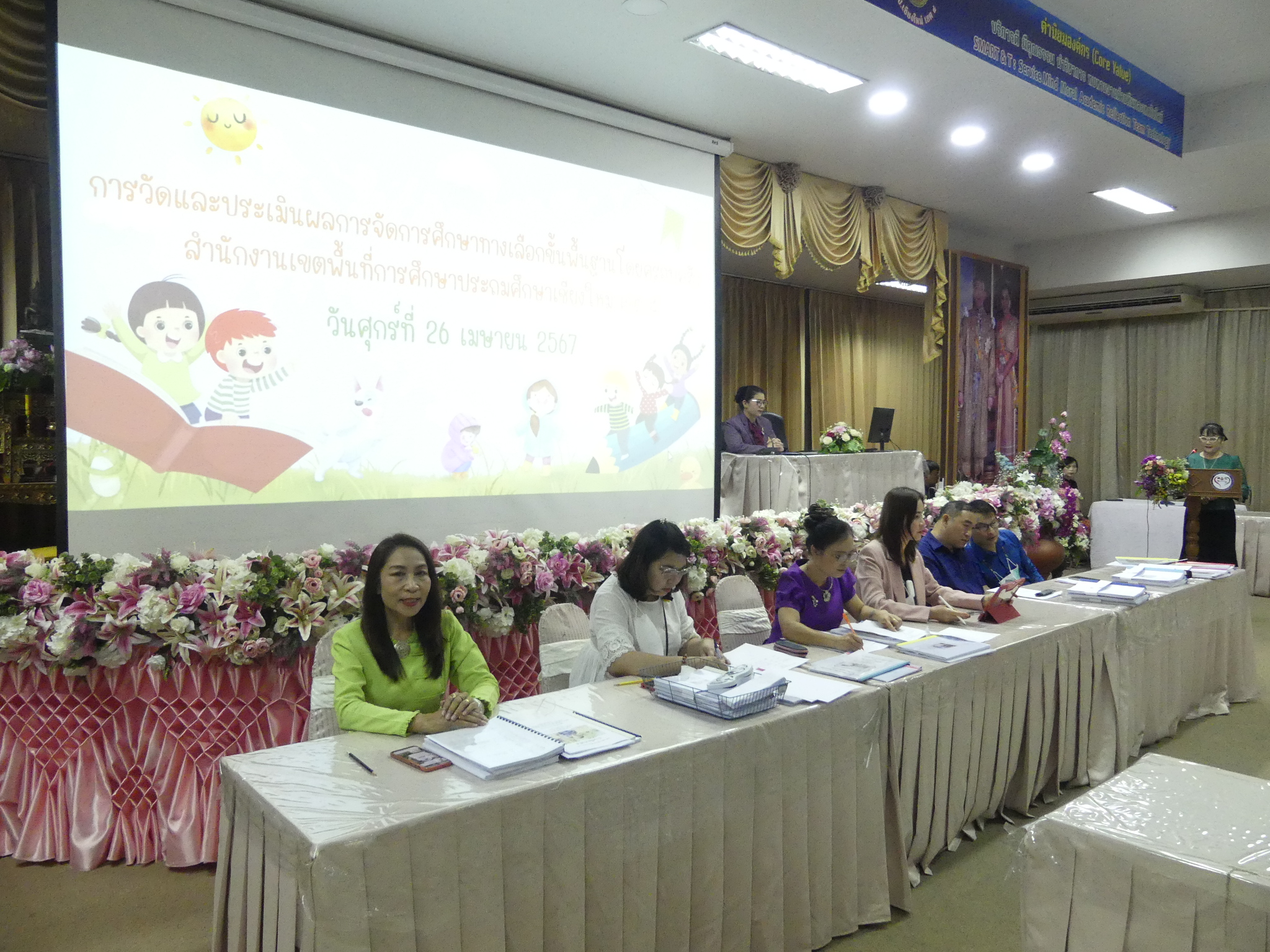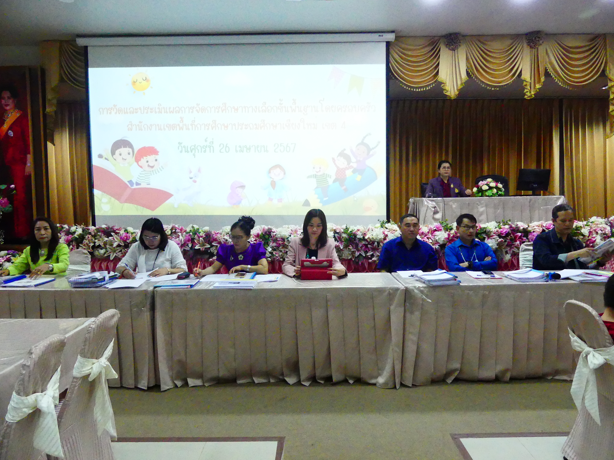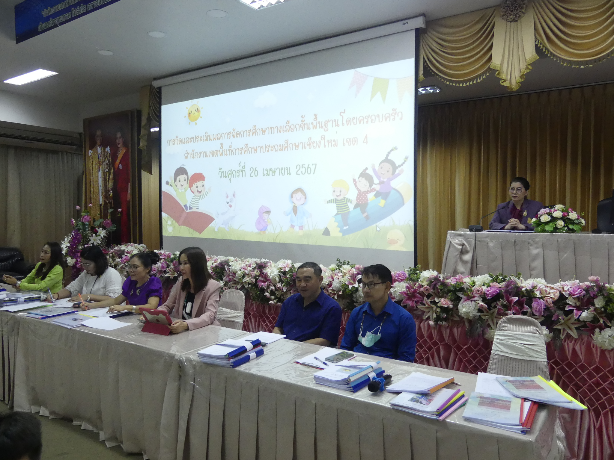 วันที่ 26 เมษายน 2567 ดร.ชาญชิต ทัพหมี ผู้อำนวยการสพป.เชียงใหม่ เขต 4 มอบหมายให้นางอุไรวรรณ สุรภีร์ เป็นประธานพิธีเปิดการประเมินผลการจัดการศึกษาขั้นพื้นฐานโดยครอบครัวในการนี้ กลุ่มส่งเสริมการจัดการศึกษาและ คณะศึกษานิเทศก์ ดำเนินการวัดและประเมินผลการจัดการศึกษาขั้นพื้นฐานโดยครอบครัว ในระดับประถมศึกษา และมัธยมศึกษาตอนต้นประจำปีการศึกษา 2566 ณ ห้องประชุมสันป่าตอง สพป.เชียงใหม่ เขต 4