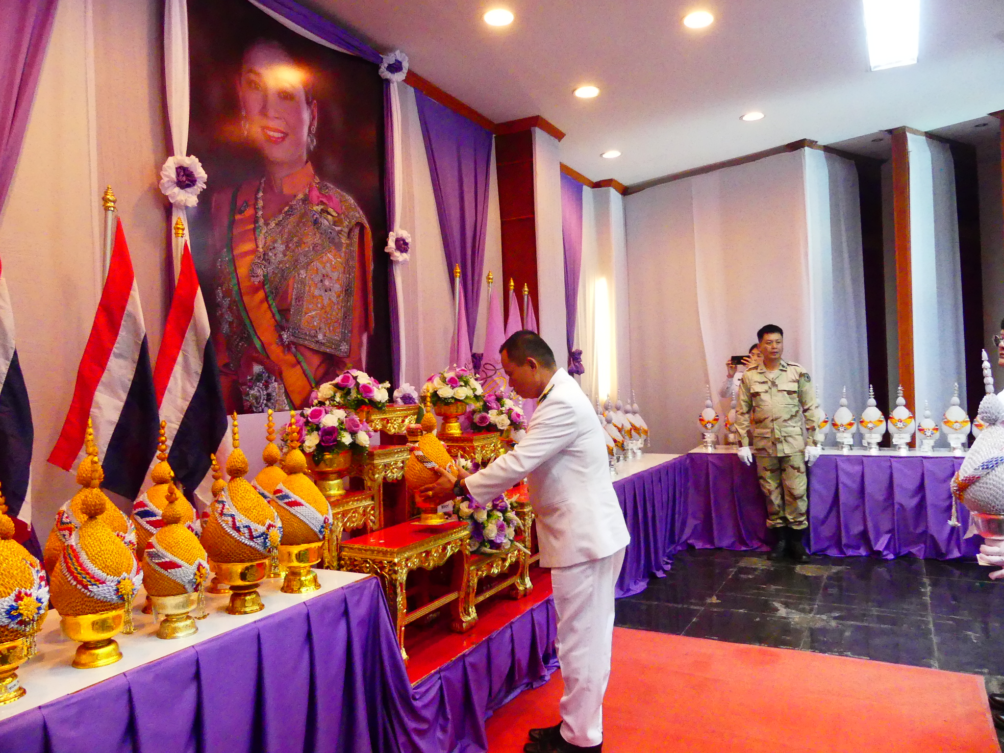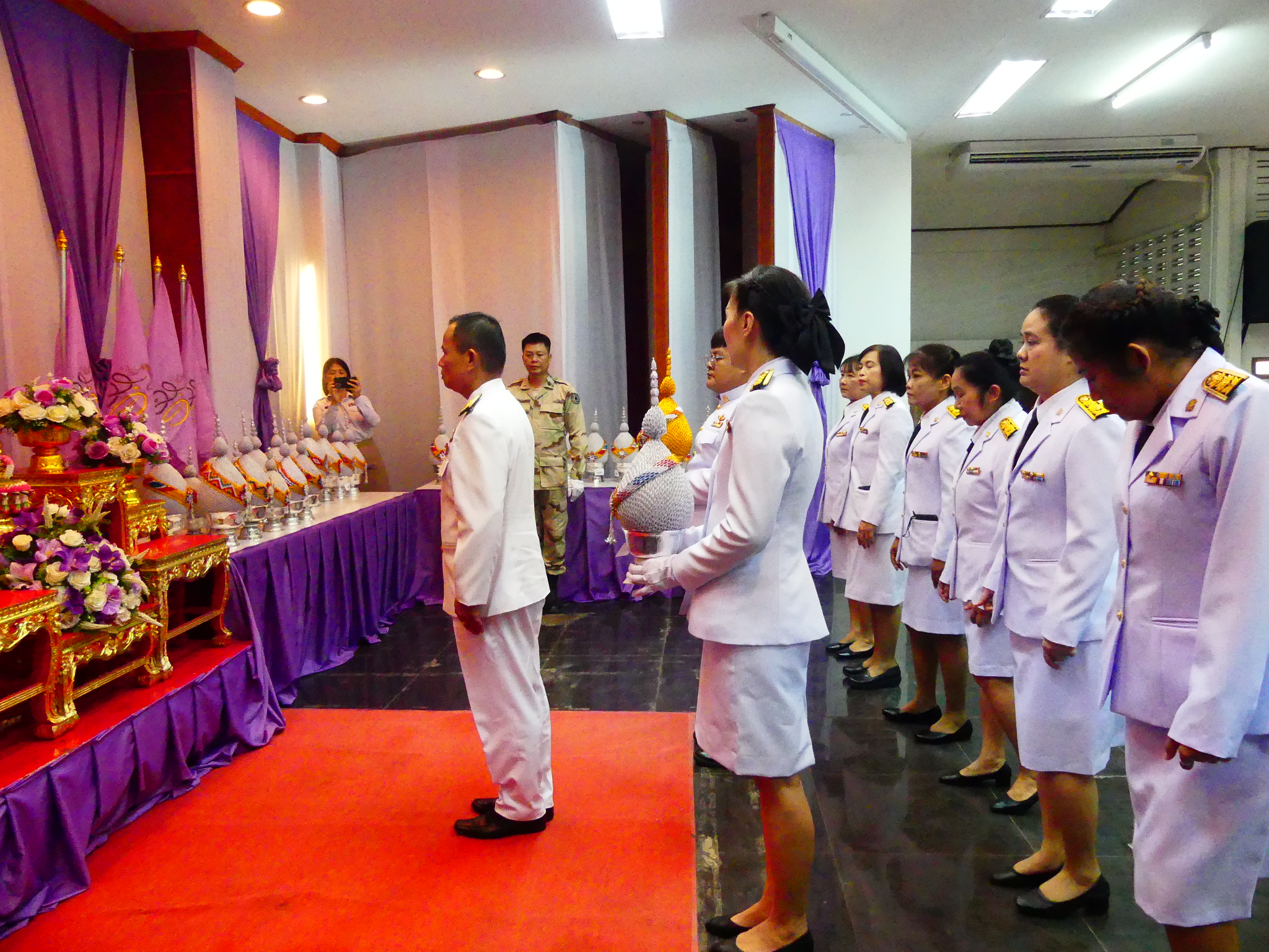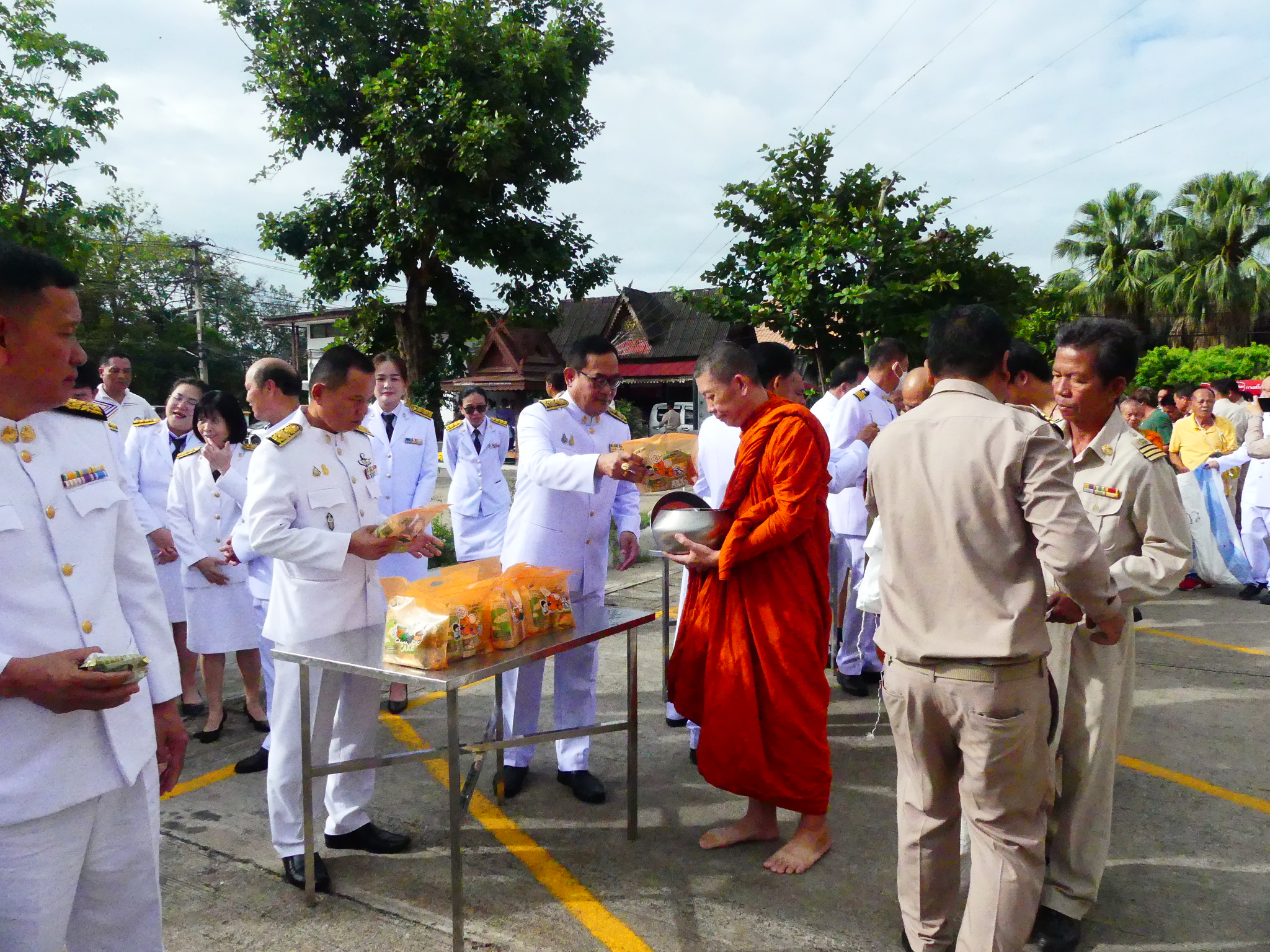 พิธีทำบุญตักบาตร ข้าวสาร อาหารแห้ง เพื่อถวายเป็นพระราชกุศล และวางพานพุ่ม เนื่องในโอกาส วันเฉลิมพระชนมพรรษา สมเด็จพระนางเจ้าสุทิดา พัชรสุธาพิมลลักษณ พระบรมราชินี