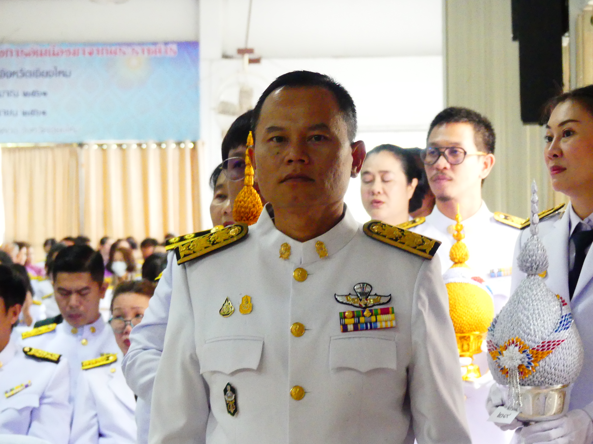 วันที่ 3 มิถุนายน ๒๕๖7 ดร.ชาญชิต ทัพหมี ผู้อำนวยการสำนักงานเขตพื้นที่การศึกษาประถมศึกษาเชียงใหม่ เขต ๔ มอบหมายให้นายสมพงษ์ แสนสำโรง รองผู้อำนวยการสำนักงานเขตพื้นที่การศึกษา พร้อมด้วยข้าราชการครูและบุคลากรทางการศึกษา กลุ่มส่งเสริมการจัดการศึกษา ร่วมพิธีทำบุญตักบาตร ข้าวสาร อาหารแห้ง เพื่อถวายเป็นพระราชกุศล และวางพานพุ่ม เนื่องในโอกาส วันเฉลิมพระชนมพรรษา สมเด็จพระนางเจ้าสุทิดา พัชรสุธาพิมลลักษณ พระบรมราชินี ณ ศาลาประชาคม ที่ว่าการอำเภอสันป่าตอง จังหวัดเชียงใหม่