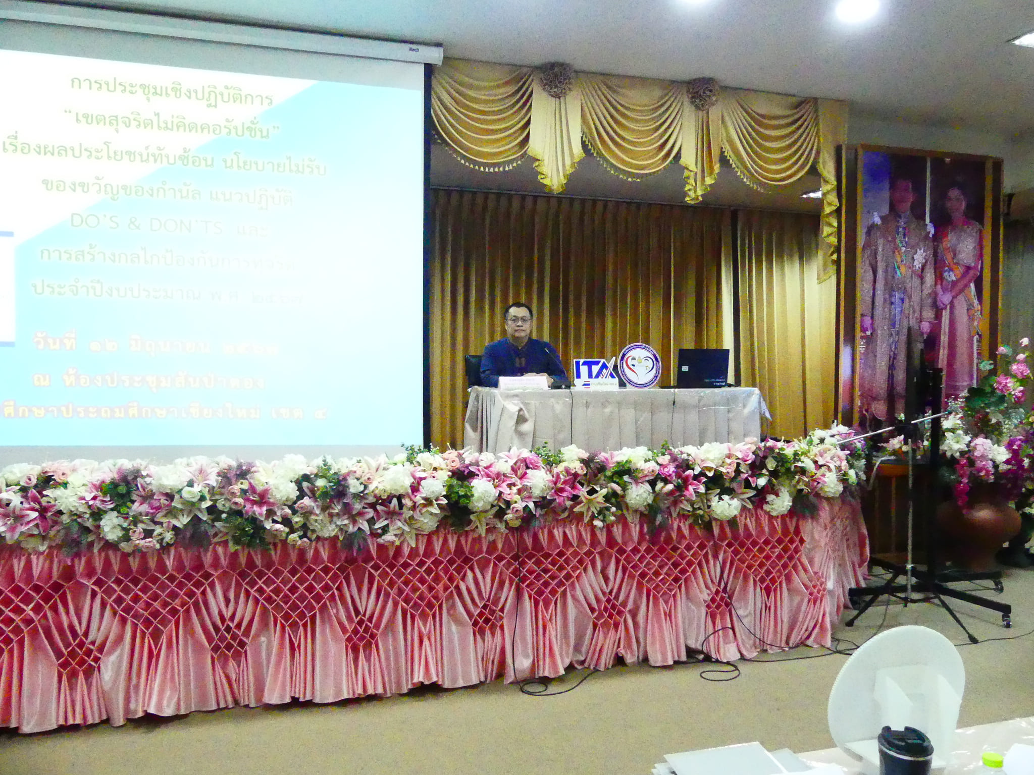วันที่ 12 มิถุนายน 2567 ดร.ชาญชิต ทัพหมี ผู้อำนวยการ สพป.เชียงใหม่ เขต 4 เป็นประธานการประชุมเชิงปฏิบัติการ “เขตสุจริตไม่คิดคอร์รัปชั่น” เรื่องผลประโยชน์ส่วนตัว ผลประโยชน์ส่วนรวม ผลประโยชน์ทับซ้อน แนวปฏิบัติ Do’s & Don’ts นโยบายไม่รับของขวัญของกำนัล และสร้างกลไกการป้องกันการทุจริต โดยมีข้าราชการครูและบุคลากรทางการศึกษา ในสังกัด สพป.เชียงใหม่ เขต 4 เข้าร่วมการประชุม ณ ห้องประชุมสันป่าตอง สพป.เชียงใหม่ เขต 4
