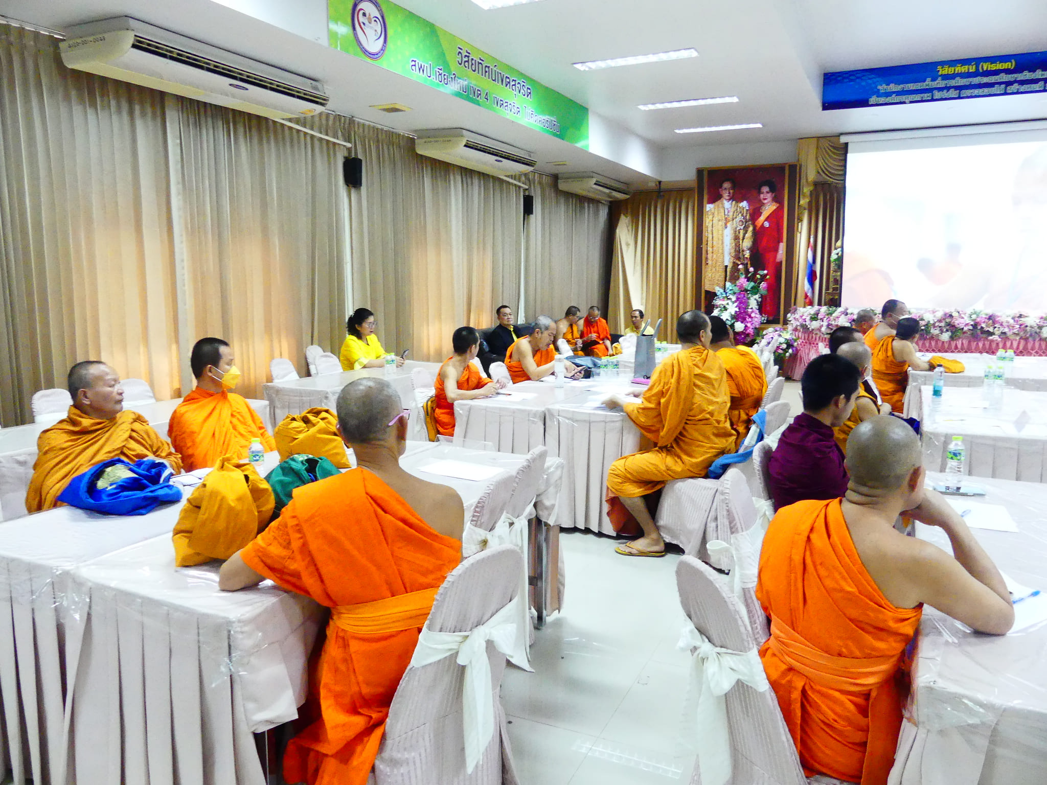 วันที่ 17 มิถุนายน 2567 พระครูสิริรบรมธาตุพิทักษ์ , ผู้ช่วยศาตราจารย์ ดร.รองอธิการบดีวิทยาเขตเชียงใหม่ เป็นประธานการอบรมเชิงปฏิบัติการพัฒนาสมรรถนะการจัดการเรียนรู้ Active Learning ด้วยกระบวนการโครงงานคุณธรรมประจำสถานศึกษา โดยความร่วมมือระหว่างสำนักงานเขตพื้นที่การศึกษาประถมศึกษาเชียงใหม่ เขต 4 กับมหาวิทยาลัยมหาจุฬาลงกรณ์ราชวิทยาลัย และคณะสงฆ์จังหวัดเชียงใหม่ มีดร.ชาญชิต ทัพหมี ผู้อำนวยการ สพป.เชียงใหม่ เขต 4 เป็นผู้กล่าวรายงาน โดยมีผู้บริหารสถานศึกษา คณะครู เจ้าหน้าที่ และพระสอนศีลธรรมในโรงเรียนเขตพื้นที่การศึกษาประถมศึกษาเชียงใหม่ เขต 4 เข้าร่วมประชุม ณ ห้องประชุม สันป่าตอง สพป.เชียงใหม่ เขต 4